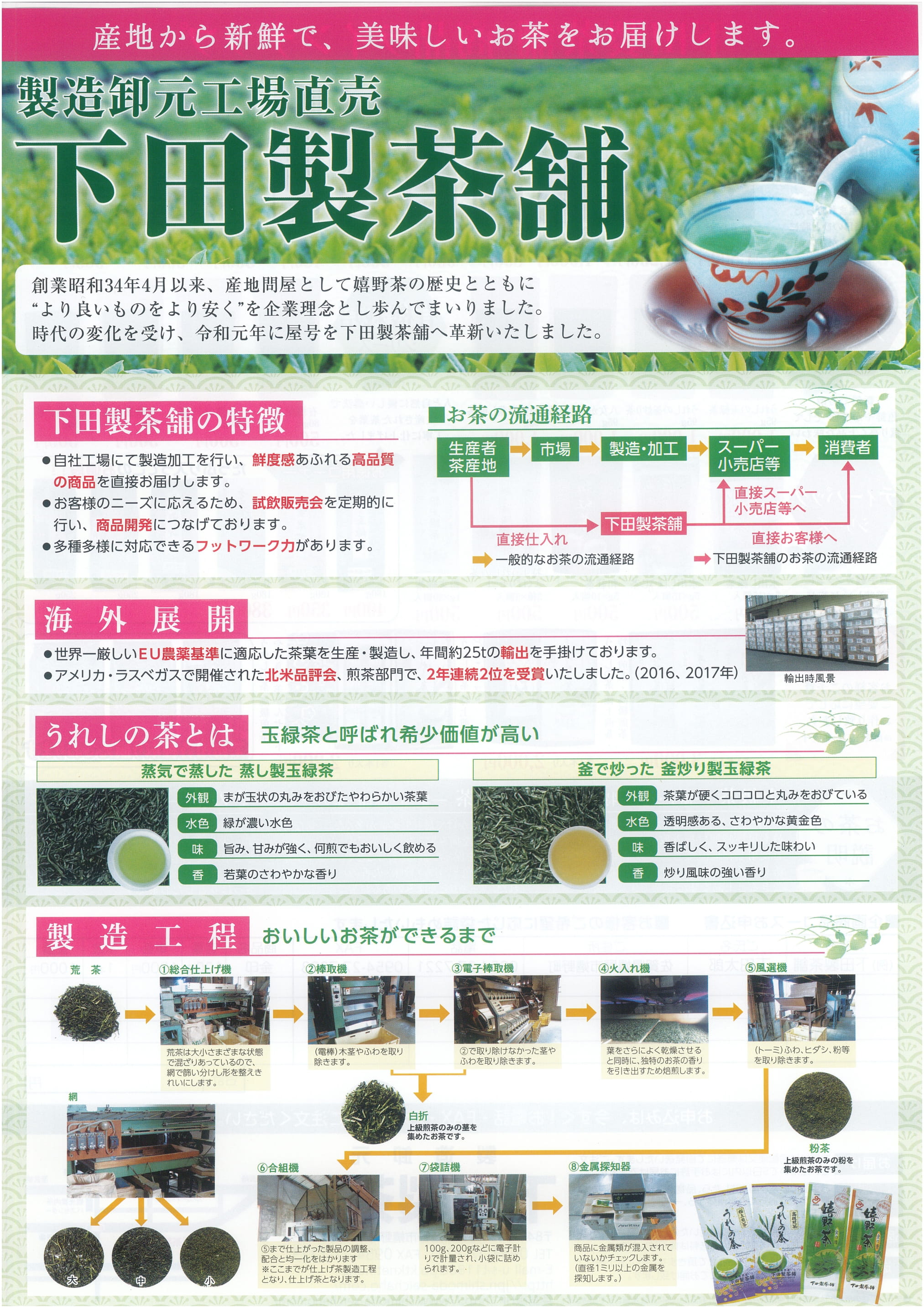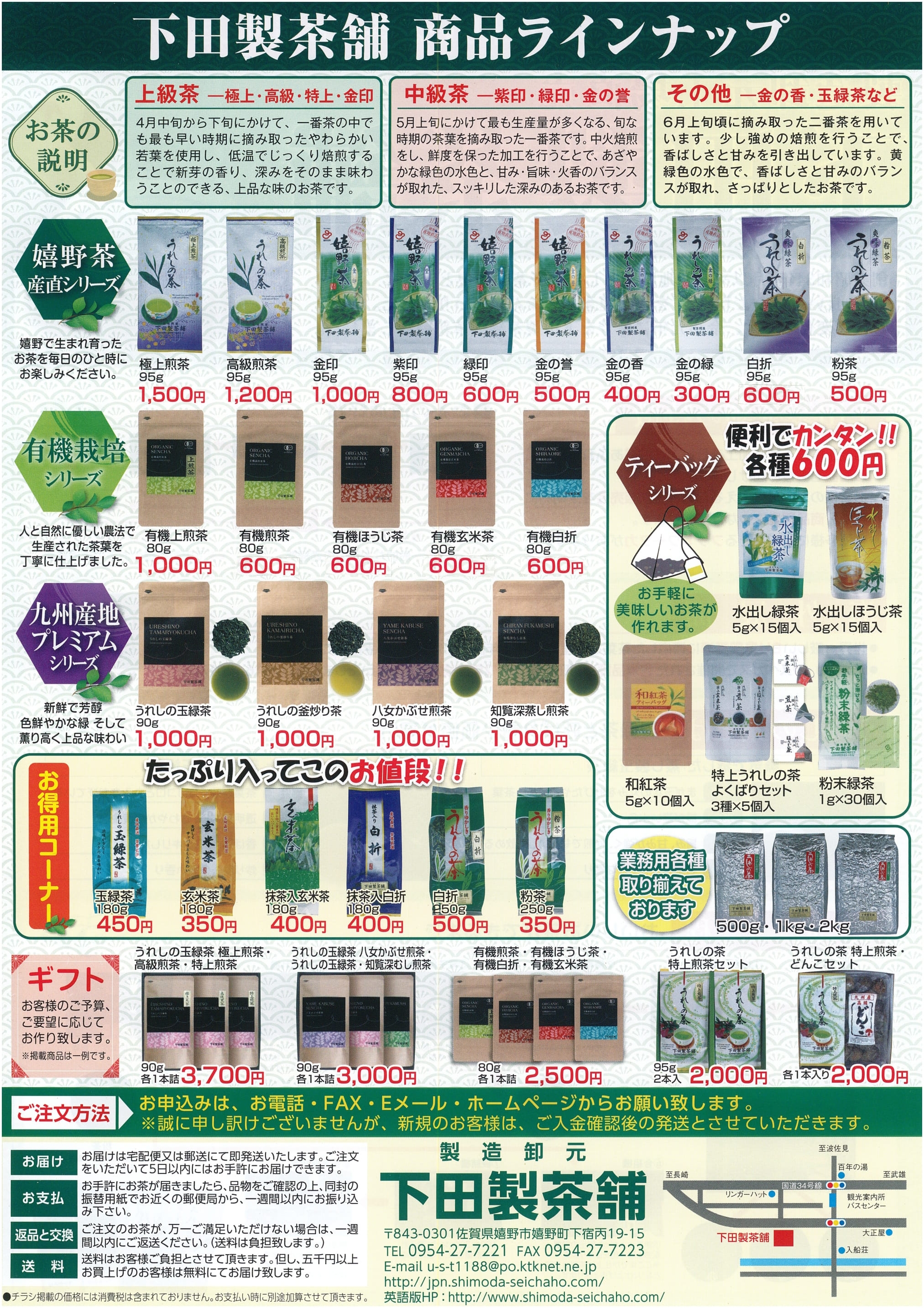 下田製茶舗商品のご案内チラシ ご注文はお問合せフォームからもできます